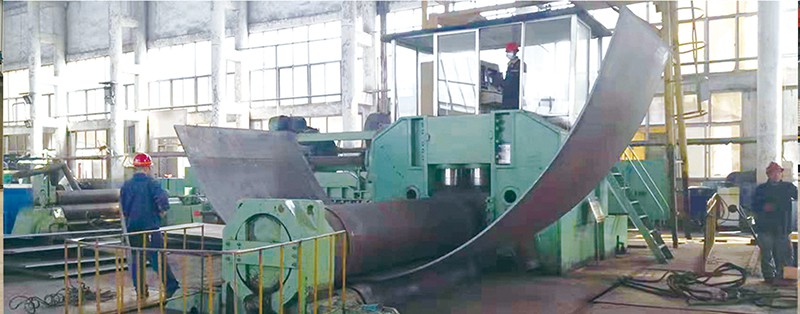 簡析卷板機的工作原理及應用範圍卷板機是對板料進行連續點彎曲的塑形機床,具有卷製O 同的形狀卷板機規格平整的塑性金屬板通過卷板機的三根工作輥(二根下輥、一根上輥) 之間,借助上輥的下壓及下輥的旋轉運動,使金屬板經過多道次連續彎曲(內層 壓縮變形,中層不變,外層拉伸變形),產生塑性變形,卷製成所需要 的圓筒、錐筒或它們的一部分。 卷板機的工作原理是卷板機上輥在兩下輥中央對稱位置通過液壓缸內的液壓油作用於活塞作垂直升降運動,通過主減速機的末級齒輪帶動兩下輥齒輪齧合作旋轉 運動,為卷製板材提供扭矩。借助上輥的下壓及下輥的旋轉運動,使金屬板經過 多道次連續彎曲,產生塑性變形,卷製成所需要的園筒、錐筒或它們的一部分。